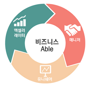 - ToTa의 3가지 Able 엑셀러레이터 Accelerators: 스타트업 기업의 지속적인 성장을 위한 필요 비즈니스 매니저 Manager: 다양한 경험을 가진 IT전문가의 효율적인 비즈니스 유니쉐어 Unishare : 각각의 사람들이 함께 생태계를 만들어가는 비즈니스